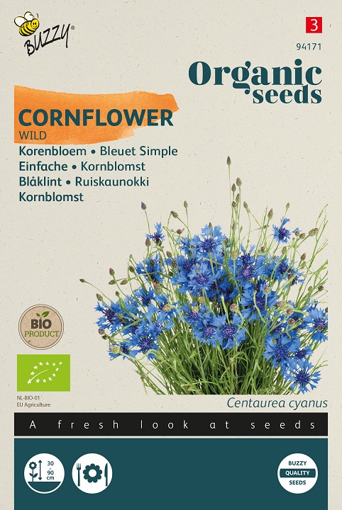 De wilde biologische korenbloem is een prachtige hemelsblauwe eenjarige bloem. Zoals hiervoor beschreven is het een wild bloemige. Als de bloemen in bloei staan is deze makkelijk af te knippen en te gebruiken als snijbloem in een vaas in huis. Uiteraard staat deze korenbloem soort ook schitterend in de pluktuin. Het leuke van deze soort is dat de bloemen eetbaar zijn.
